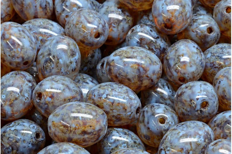 OUTLET 10克橄榄珠,水晶洞石蓝点(00030-86800-33308),玻璃,捷克共和国