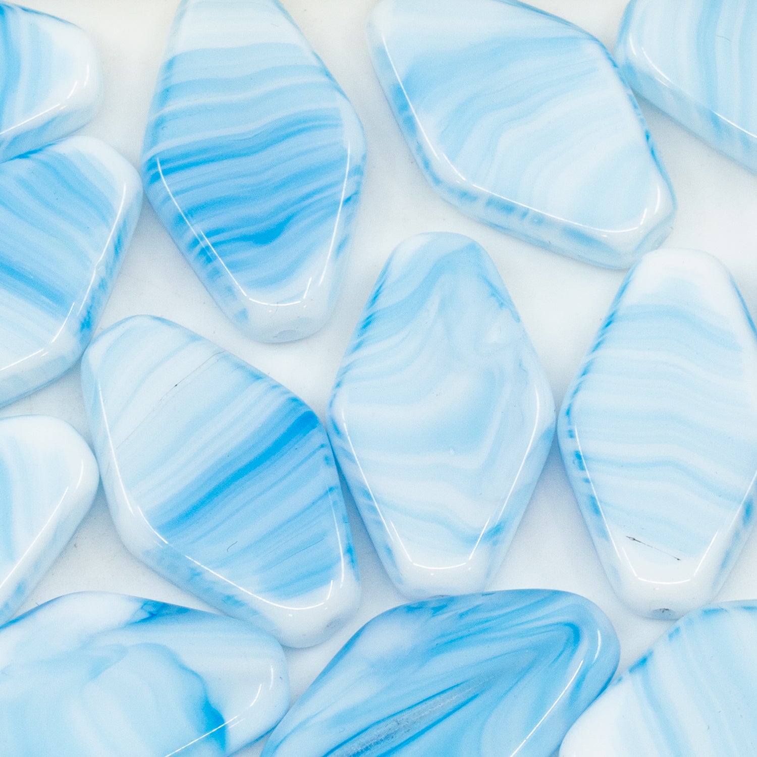 奥特莱斯 10克扁平菱形珠,25 x 15毫米,蓝色条纹(蓝色条纹),玻璃,捷克共和国