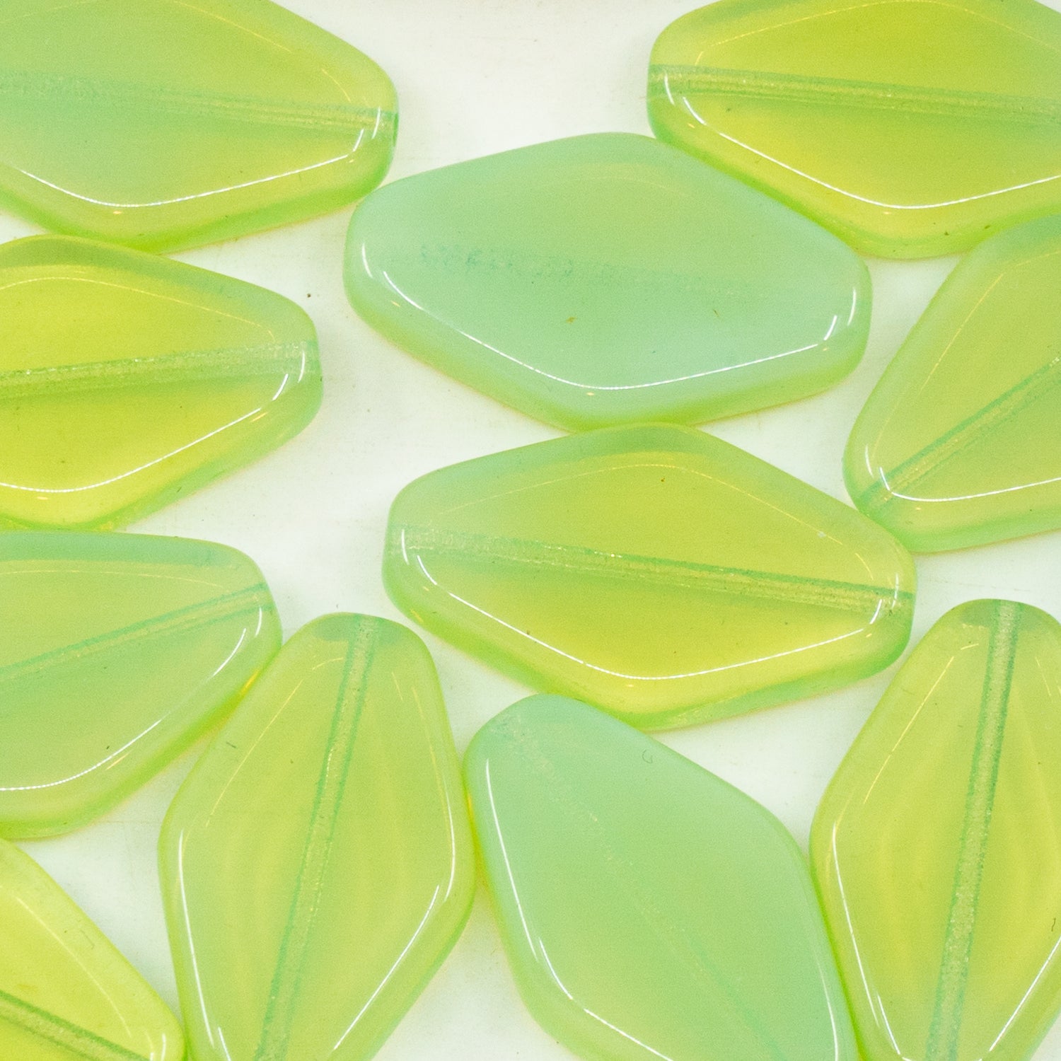 奥特莱斯 10克扁平菱形珠,25 x 15毫米,绿蛋白石(绿蛋白石),玻璃,捷克共和国