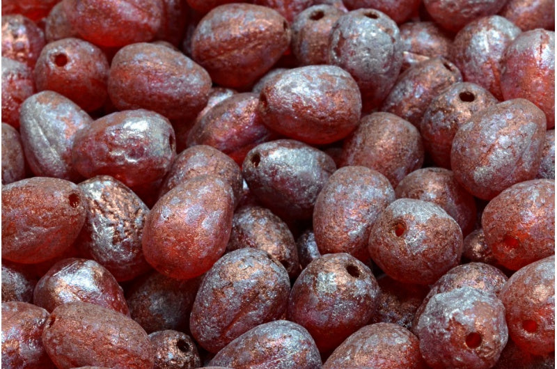 OUTLET 10克水滴瓜形珠,11 x 9毫米,透明红色蚀刻星云(90050-ETCH-15001),玻璃,捷克共和国