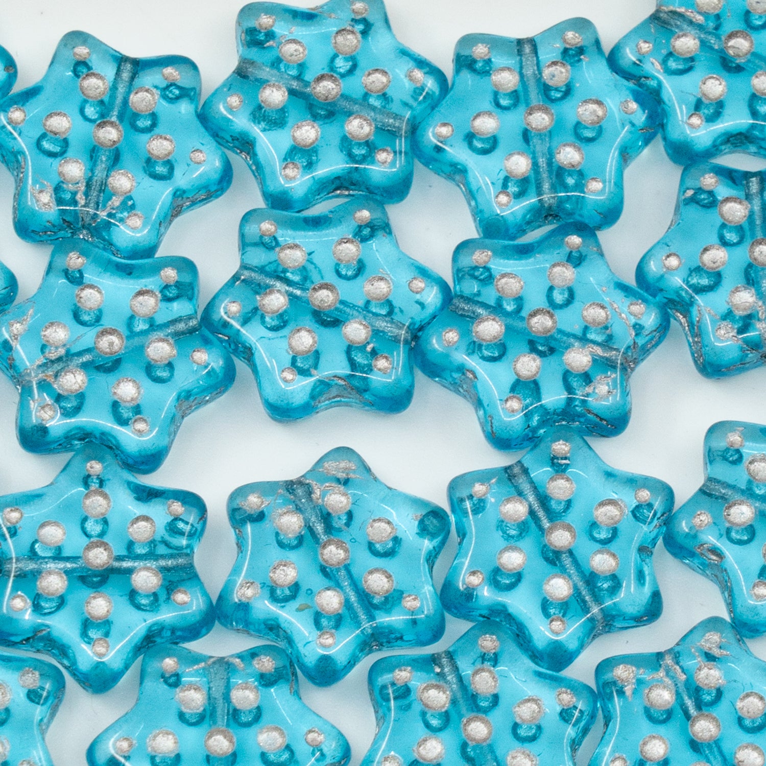 奥特莱斯 10克星形压珠,带点,透明浅绿色,银色内衬 (60010-54301),玻璃,捷克共和国