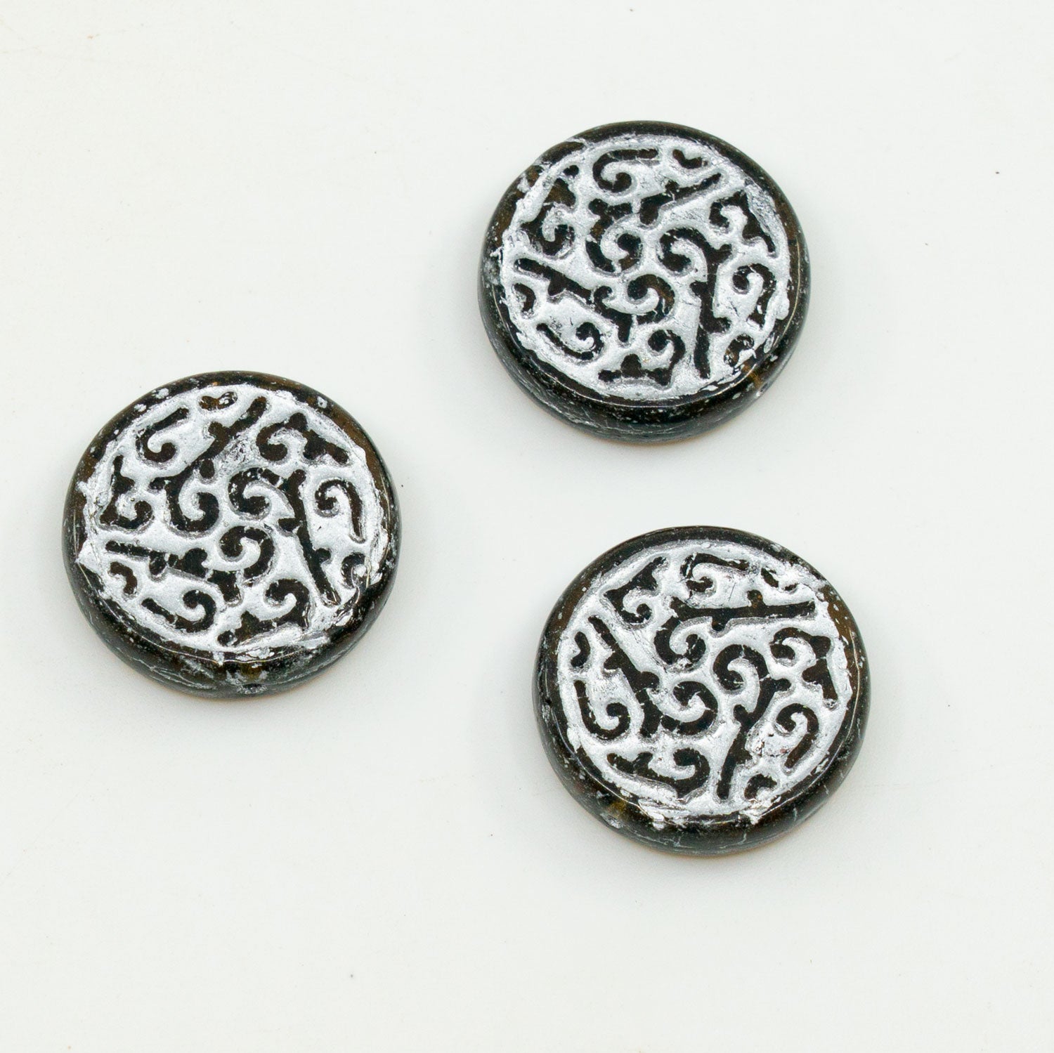 奥特莱斯 10克圆形硬币,饰有压花珠,20 x 20毫米,透明棕色银衬(10090-81403),玻璃,捷克共和国