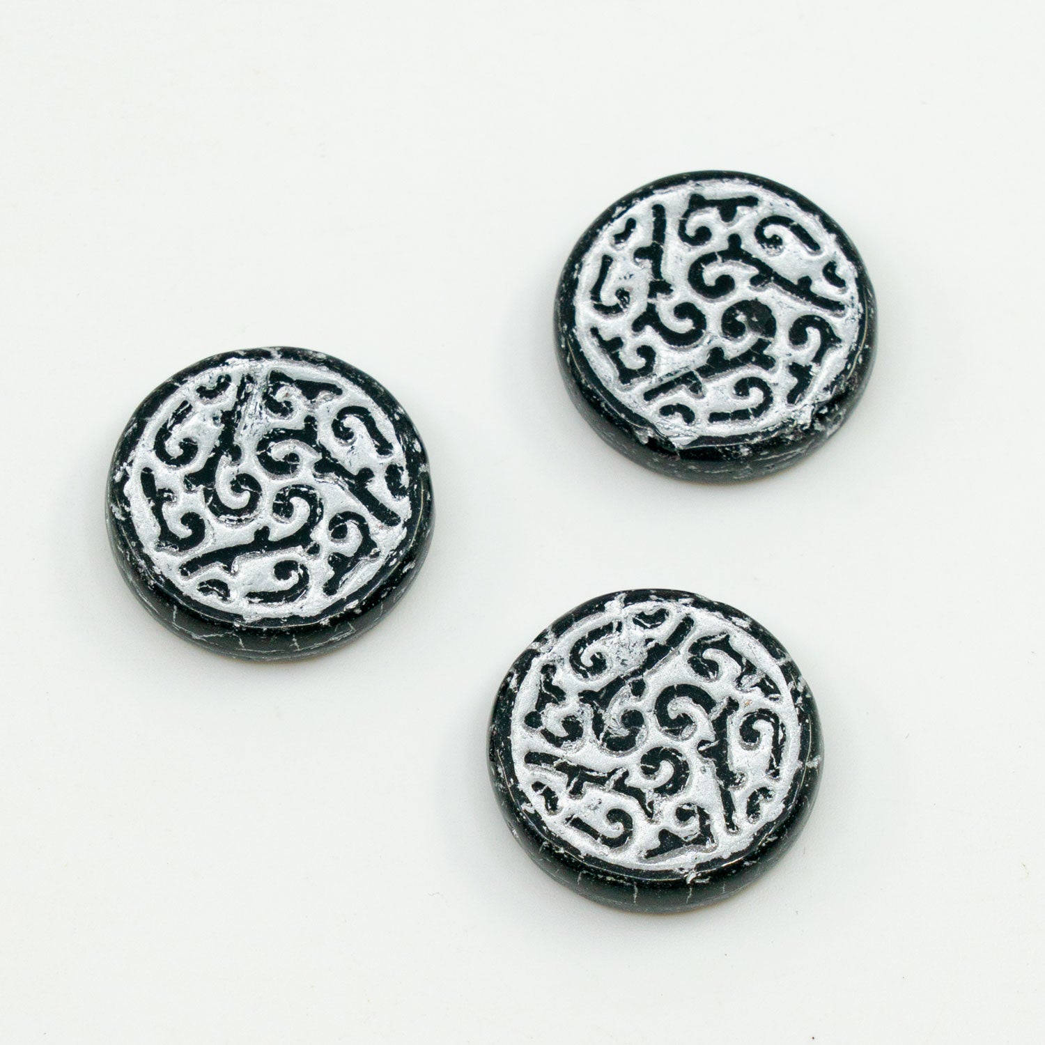 奥特莱斯 10克圆形硬币,饰有压花装饰珠,20 x 20毫米,黑色镀银内衬(23980-81403),玻璃,捷克共和国