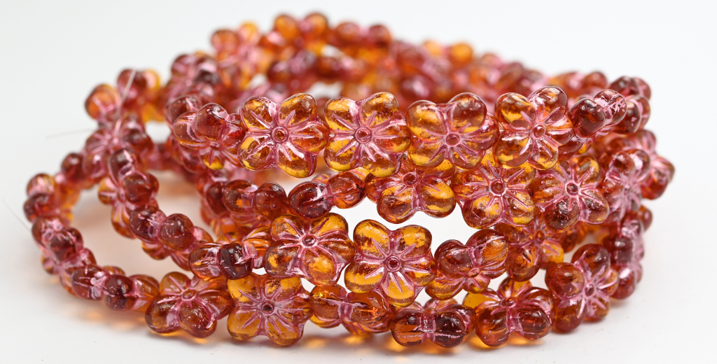 奥特莱斯 10克花朵压制玻璃珠,14 x 12毫米,托帕石粉色内衬 (10070-54321),玻璃,捷克共和国