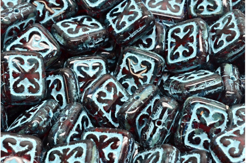 奥特莱斯 10克装饰性靠垫珠,红宝石色石灰华浅蓝色内衬 (90080-86800-54308),玻璃,捷克共和国