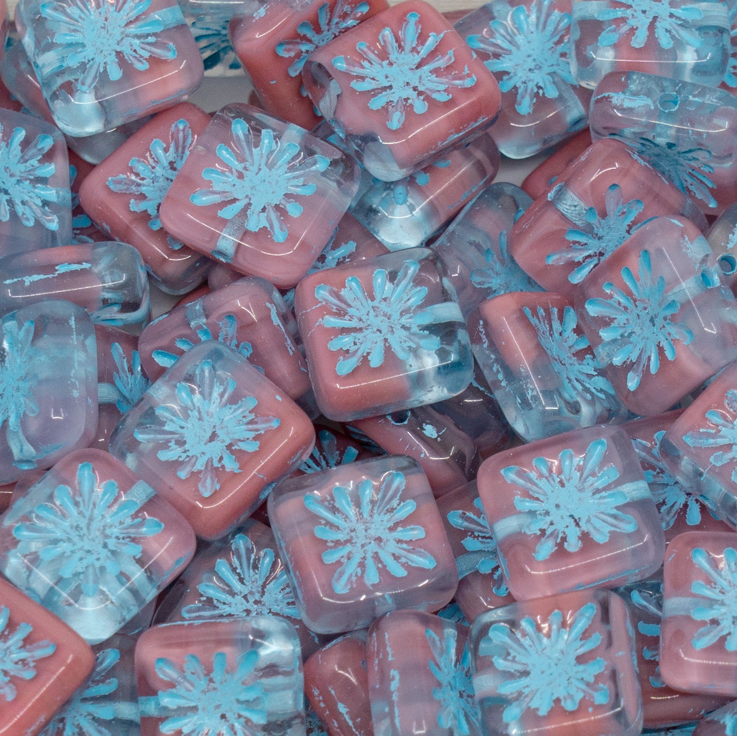 奥特莱斯 10 克方形猕猴桃珠,10 x 10 毫米,丝滑粉色浅蓝色内衬 (76027-54308),玻璃,捷克共和国