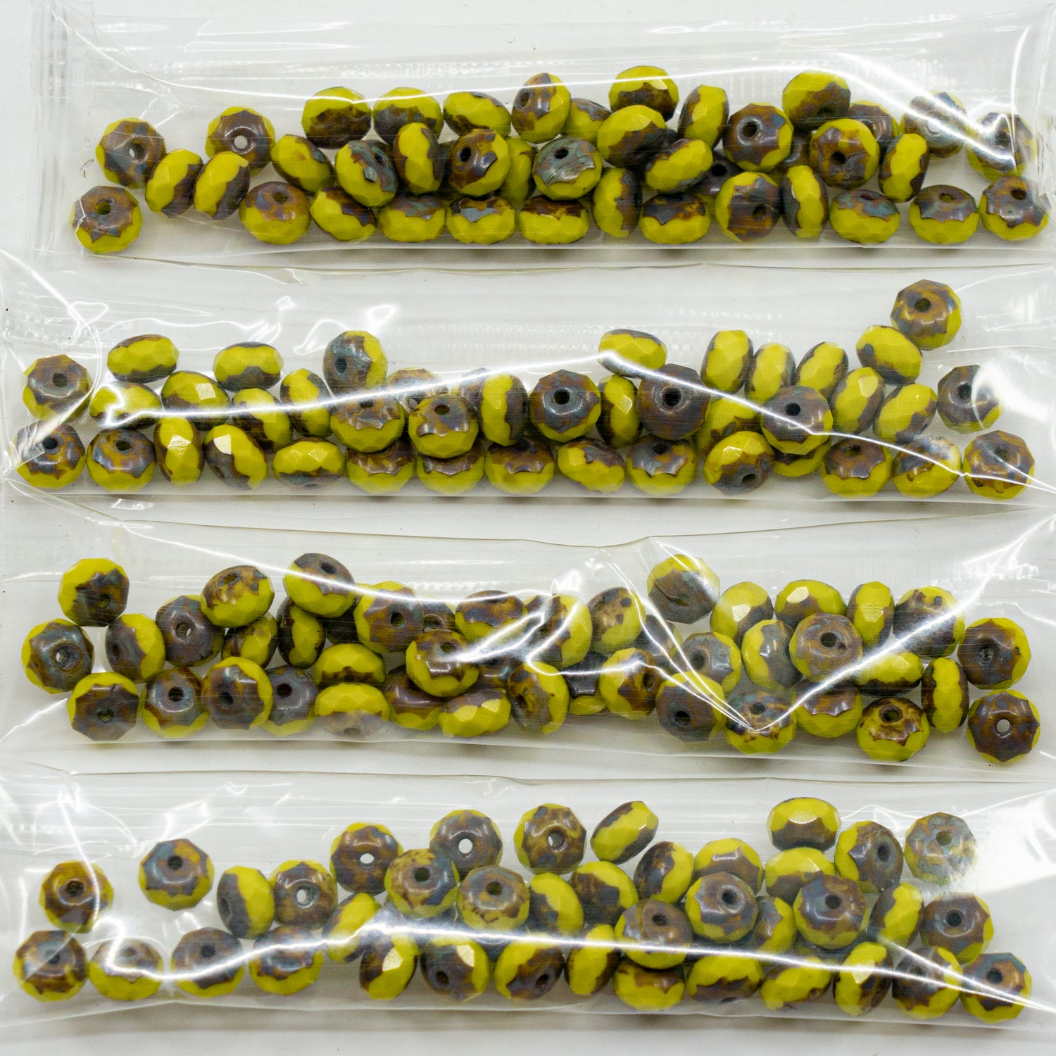 奥特莱斯 10 克多面火抛光圆珠,5 x 7 毫米,不透明绿色石灰华 (53400-86800),玻璃,捷克共和国