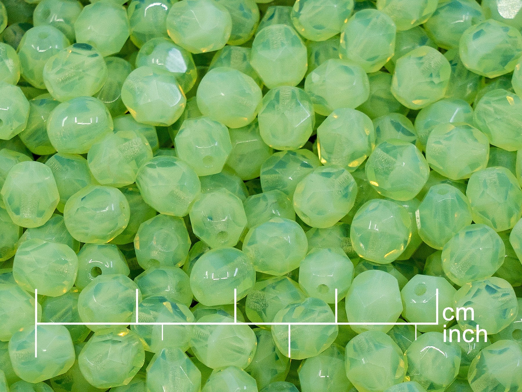 10 grams contain approximately 38 beads, size 6 x 6 mm