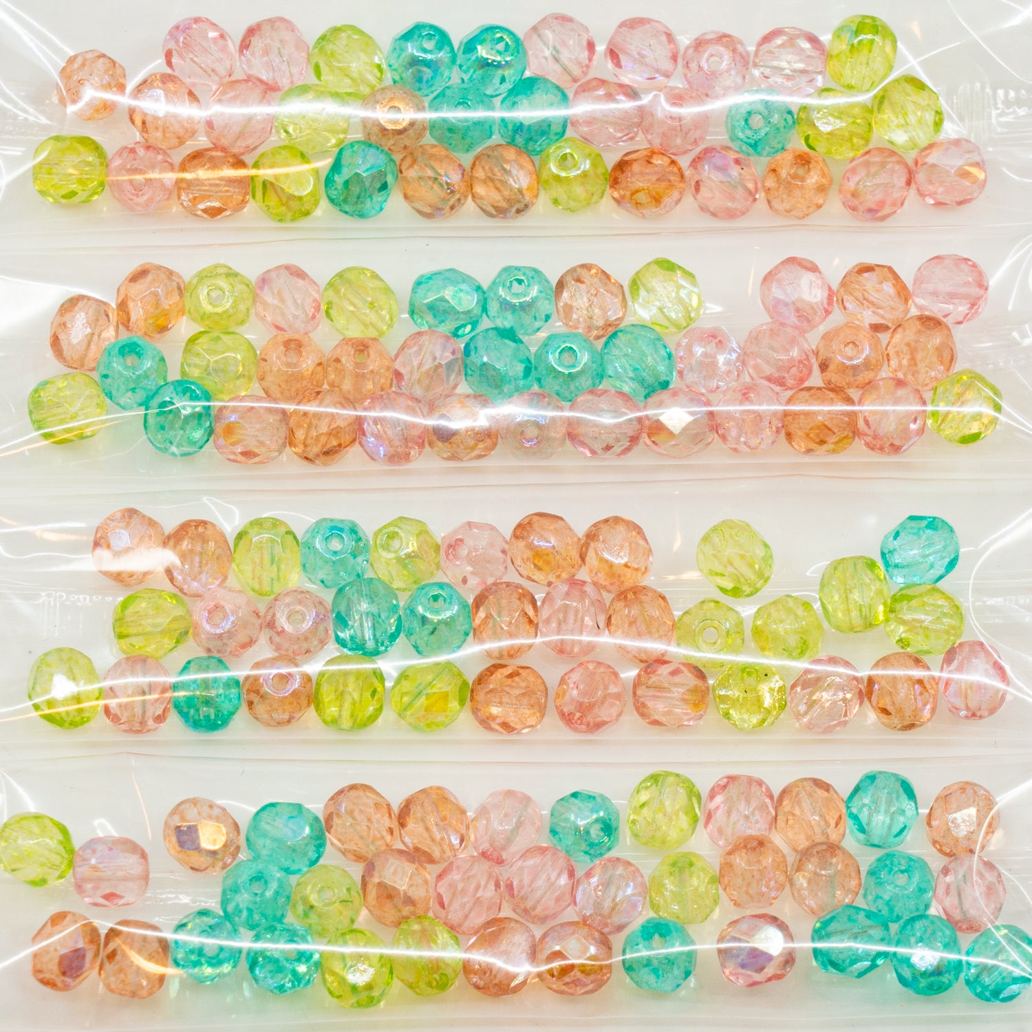 OUTLET 10克 刻面圆形火抛光珠,6 x 6毫米,水晶粉彩混合色(00030-pastel-mix),玻璃,捷克共和国