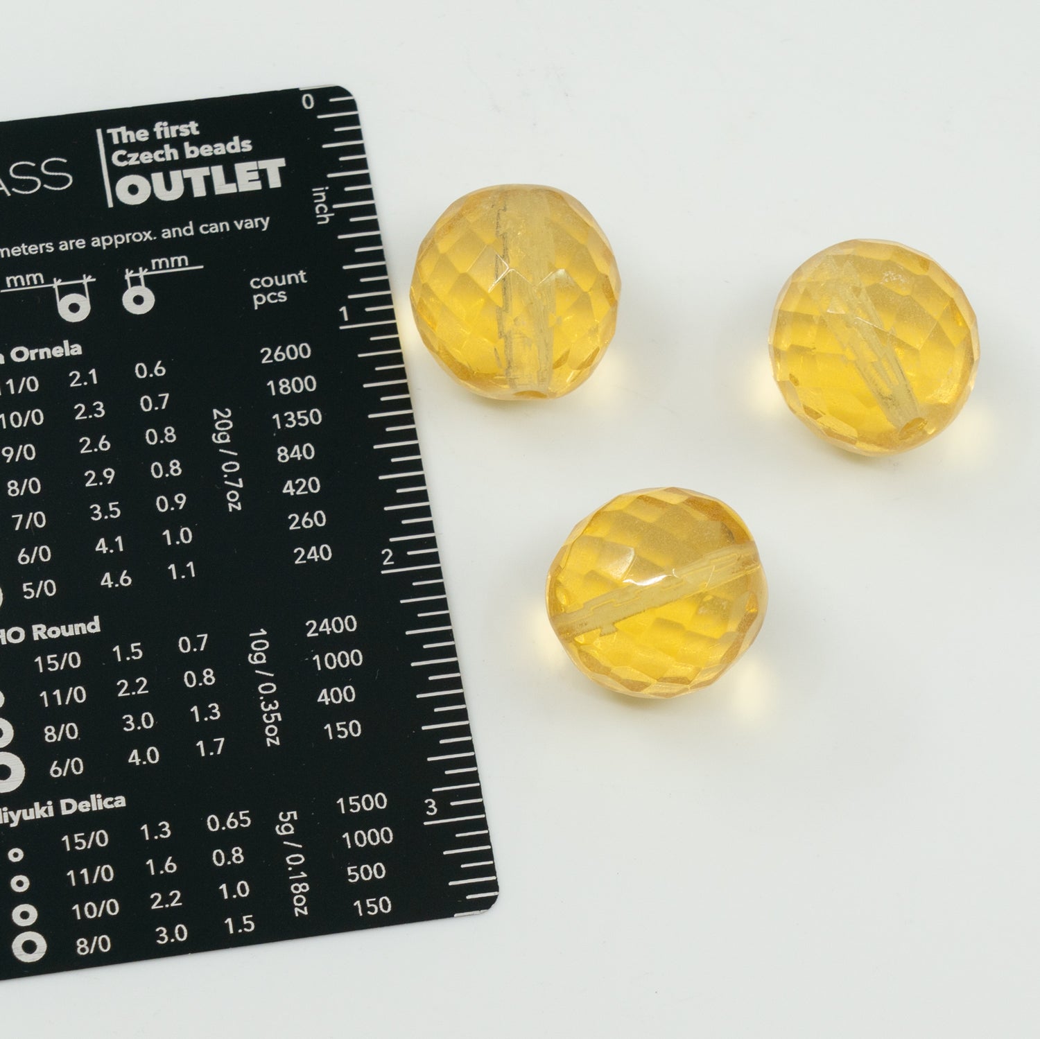 奥特莱斯 10克多面圆形火抛光珠,151-19001-20x20-10020,透明浅托帕石黄色(10020),玻璃,捷克共和国