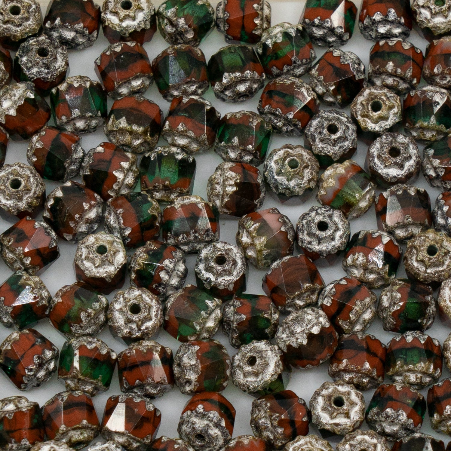 OUTLET 10g Cathedral Faceted Fire Polished Beads, 6 x 6 mm, X2936 Antique Silver Patina (x2936-81002), Glass, Czech Republic