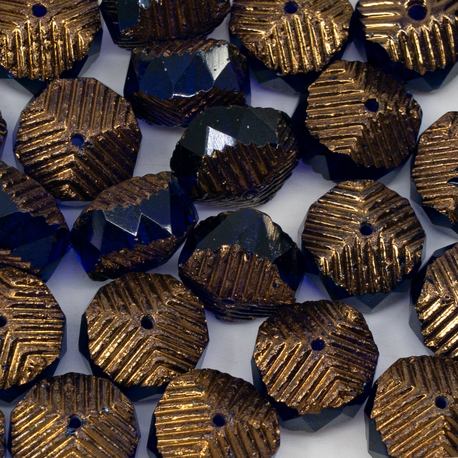 OUTLET 10克 刻面特殊圆珠,火抛光,10 x 14毫米,透明蓝青铜色 (30080-14415),玻璃,捷克共和国