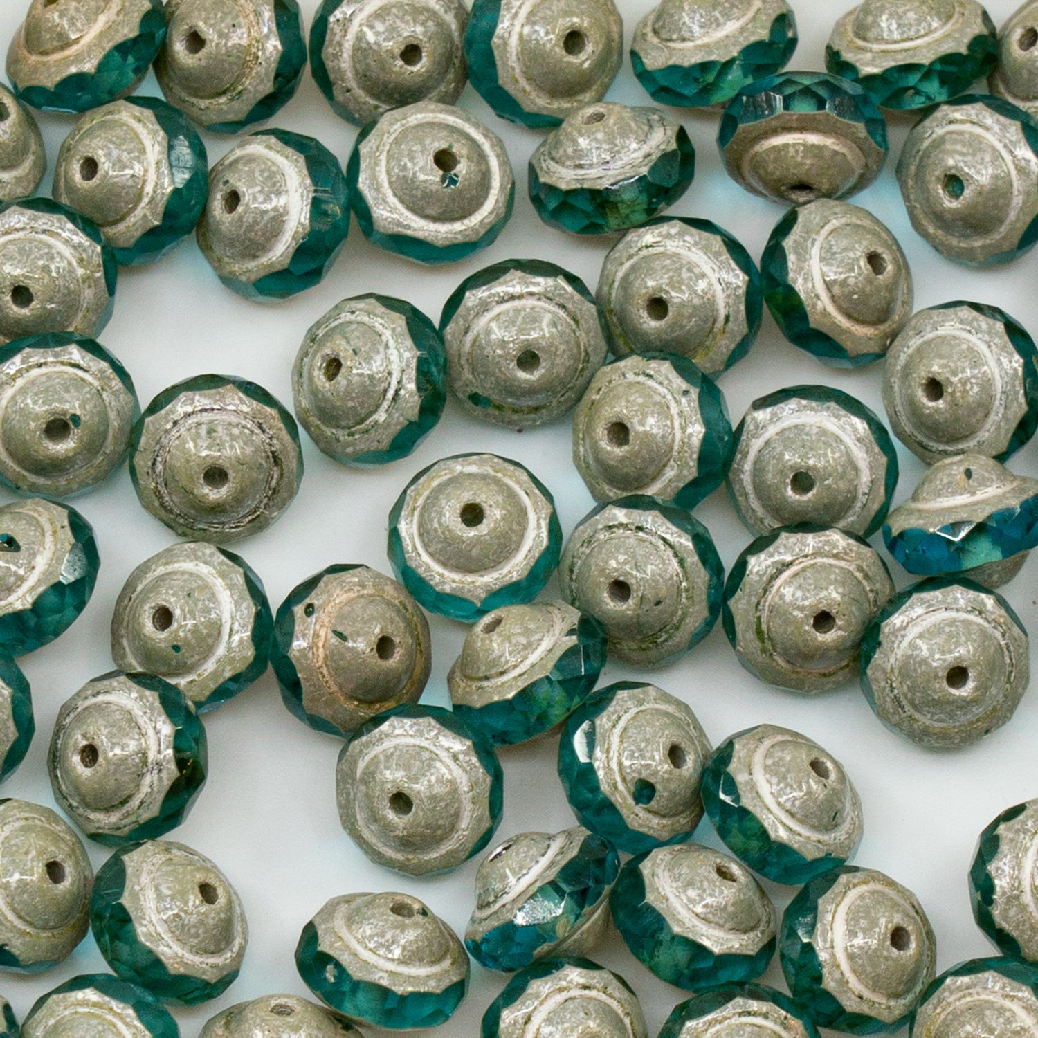 OUTLET 10g Faceted Special Cut Beads, 6 x 8 mm, Transparent Aqua Antique Silver Patina (60010-81002), Glass, Czech Republic