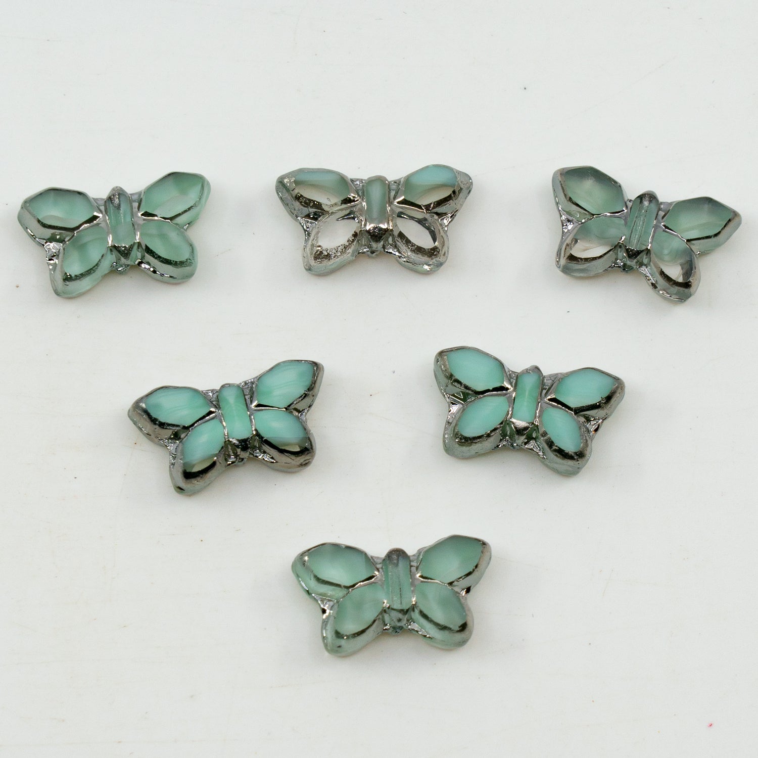 OUTLET 5克 桌面切割蝴蝶珠,20 x 12毫米,蓝绿色铬铀玻璃 (56218-uran-chrom),捷克共和国