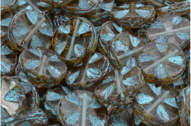 奥特莱斯 10克 台面切割十字珠,14 x 14毫米,浅蓝色水晶石灰华内衬 (00030-86800-54308),玻璃,捷克共和国