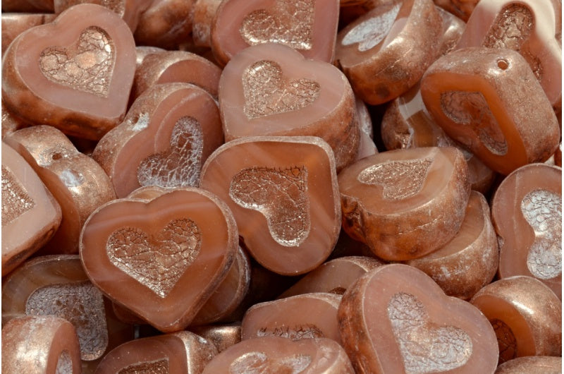 OUTLET 10 克 台面切割心形珠子,14 x 12 毫米,蛋白石粉红铜溅 (71111-86750),玻璃,捷克共和国