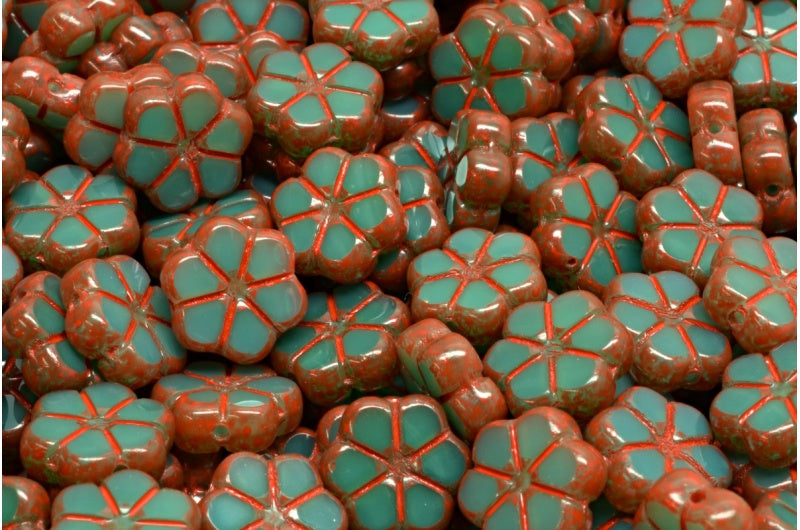 OUTLET 10克桌面切割花环珠,10 x 10毫米,蛋白石绿米色橙色斑点(52020-33307),玻璃,捷克共和国