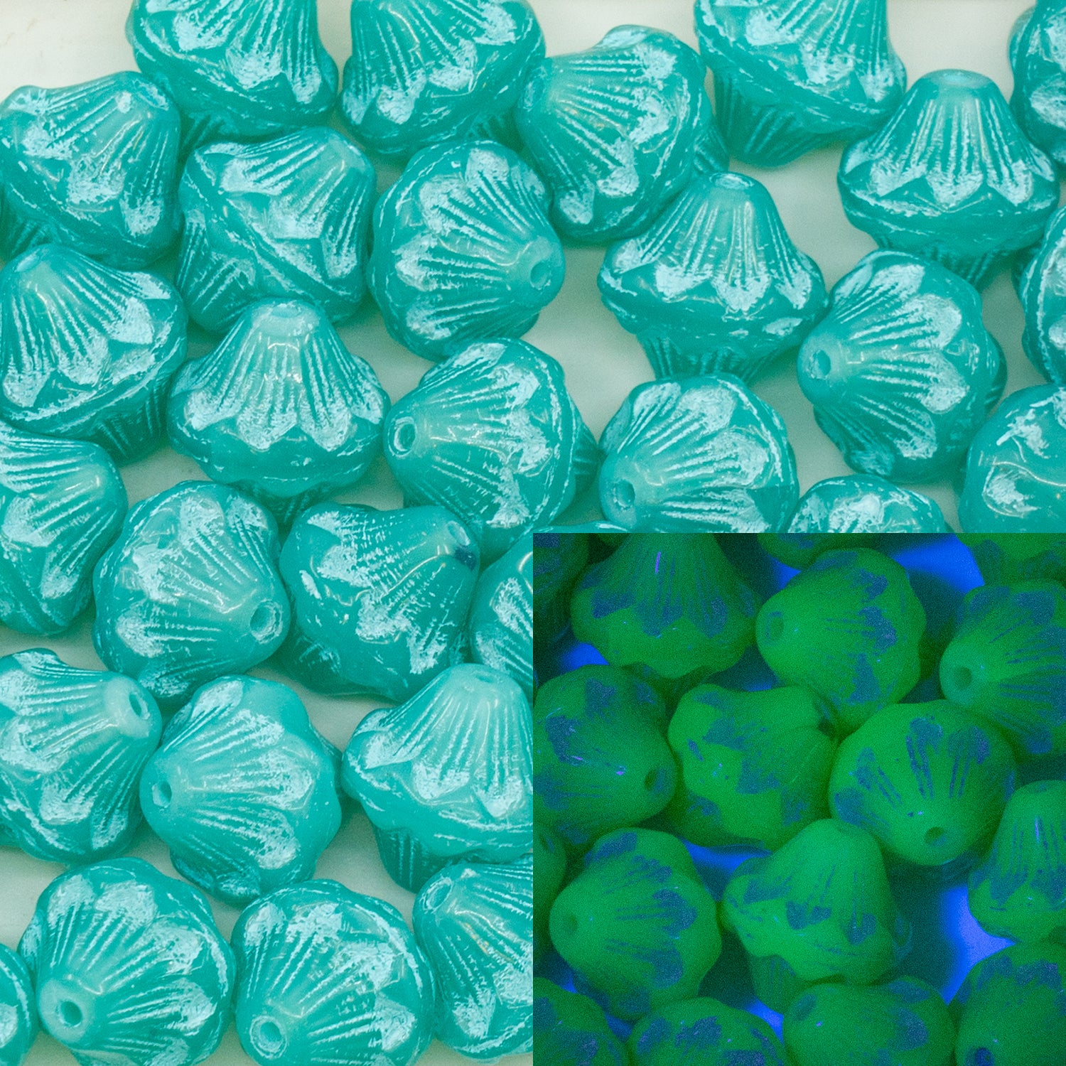 OUTLET 10克灯笼压制玻璃珠,11 x 11毫米,蛋白石绿浅蓝色内衬(52020-54308),玻璃,捷克共和国