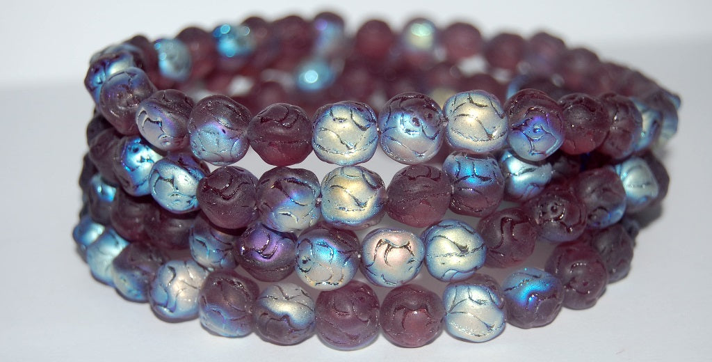 OUTLET 10克圆形玫瑰压制玻璃珠,9 x 9毫米,透明浅紫水晶色 (20040-ABM),玻璃,捷克共和国