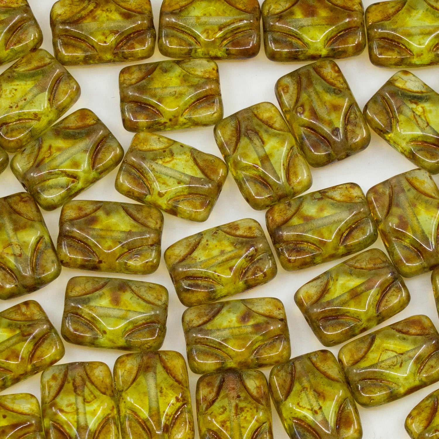 OUTLET 250克/50克压制珠,12 x 8毫米,透明绿色洞石(50500-86800),玻璃,捷克共和国
