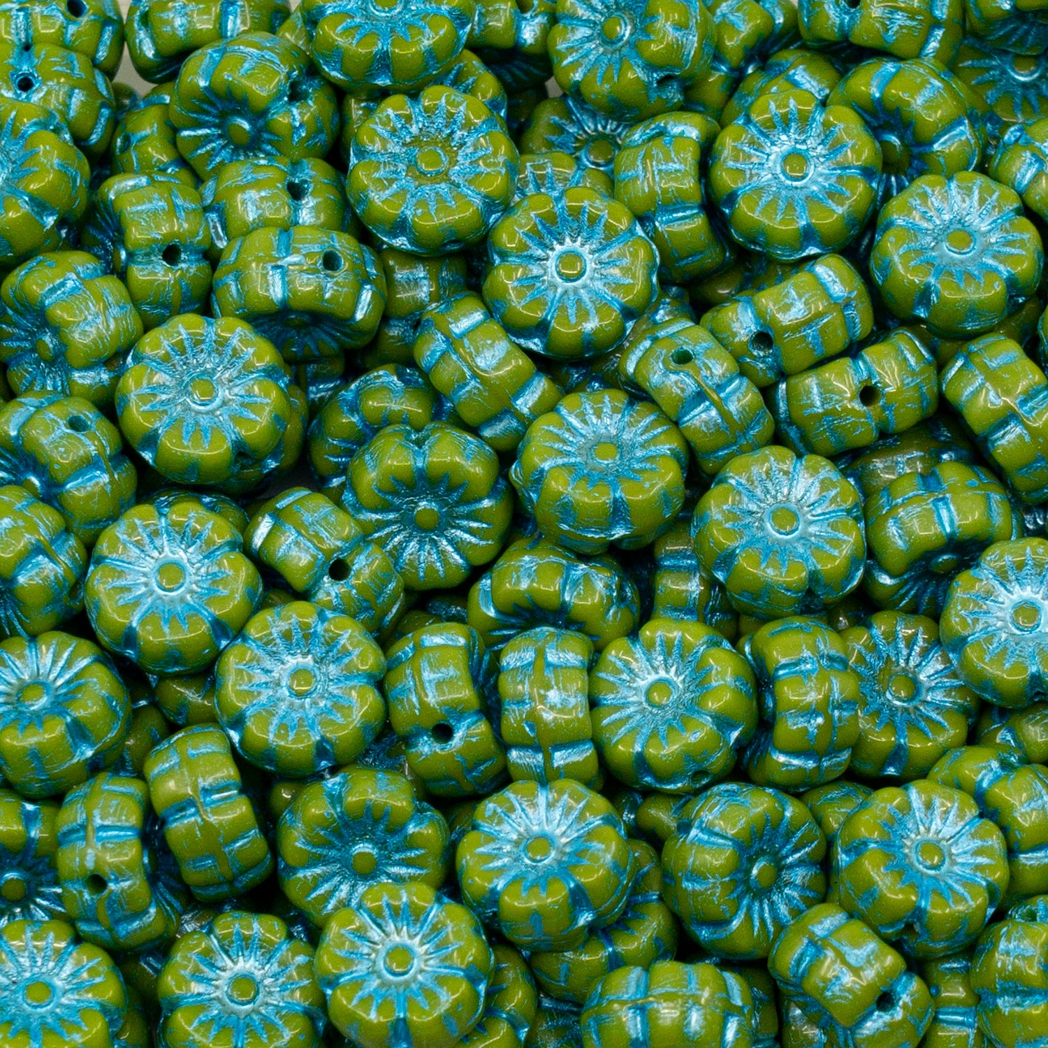 OUTLET 50克夏威夷花珠,8 x 8毫米,绿蓝内衬(53420-54323),玻璃,捷克共和国