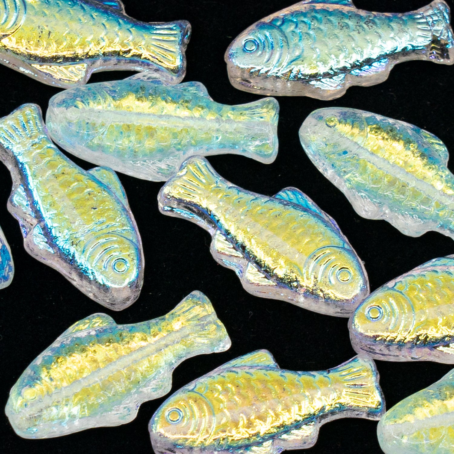 OUTLET 50 grams Big Fish Beads, 24 x 11 mm, Crystal 27103 Golden (00030-27103-golden), Glass, Czech Republic
