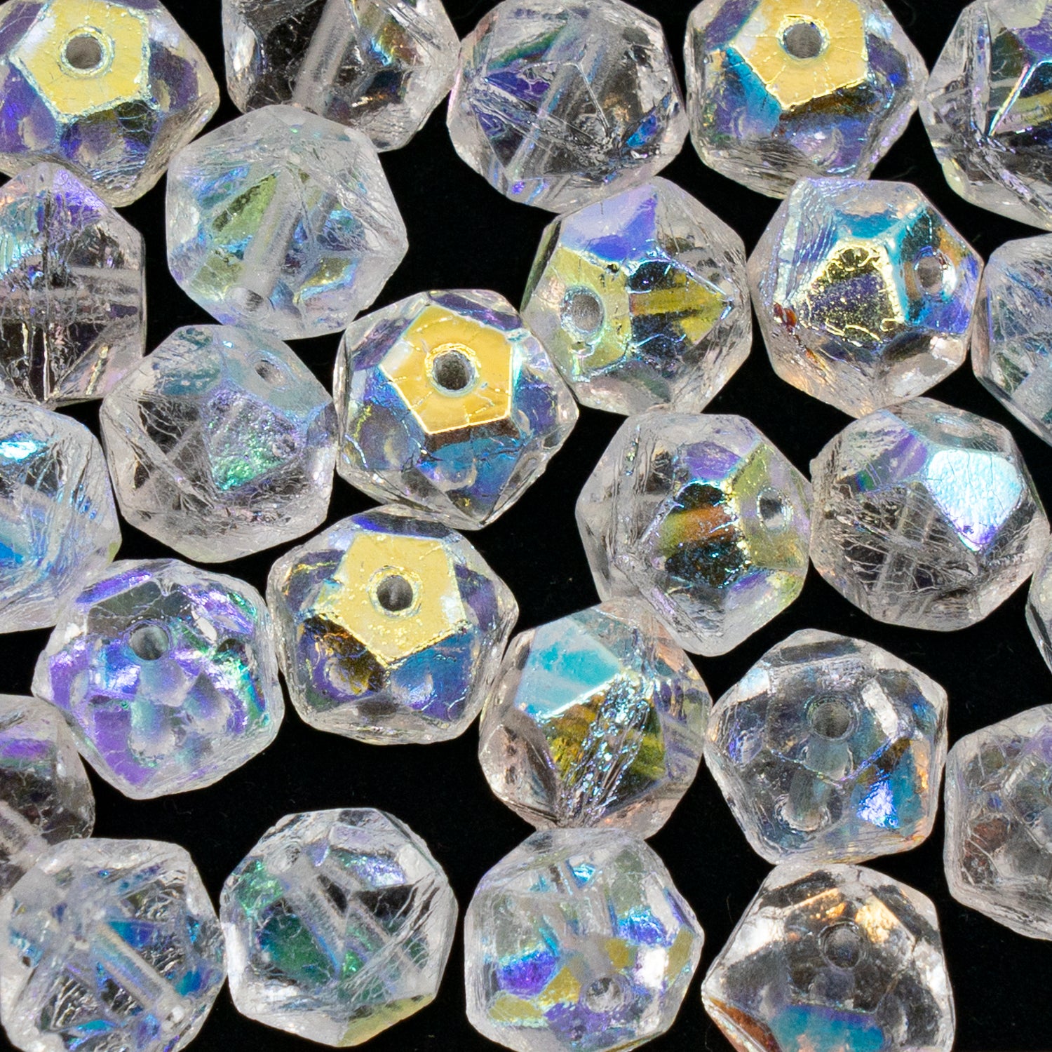OUTLET 250克/50克 粗切英式珠子,12 x 12毫米,水晶AB(00030-28701),玻璃,捷克共和国
