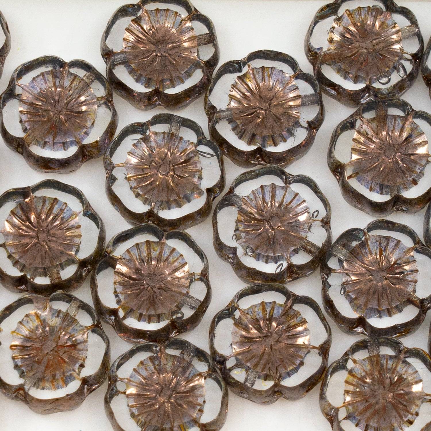 OUTLET 50 grams Table Cut Hawaii Flower Beads, 14 x 14 mm, Crystal Travertin Light Blue Lined (00030-86800-54308), Glass, Czech Republic
