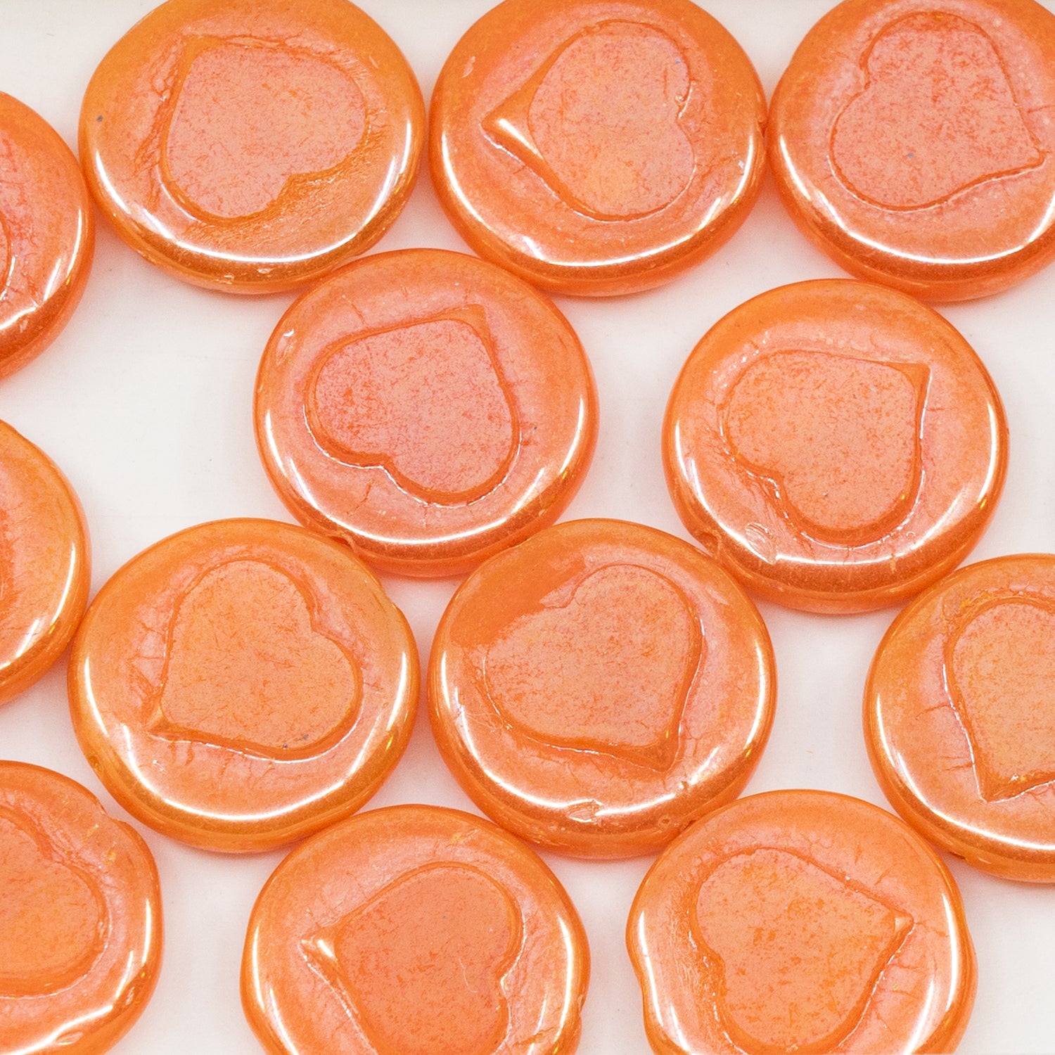 OUTLET 50克 圆形切割心形珠子,17 x 17毫米,橙色赤铁矿(81240-14400),玻璃,捷克共和国