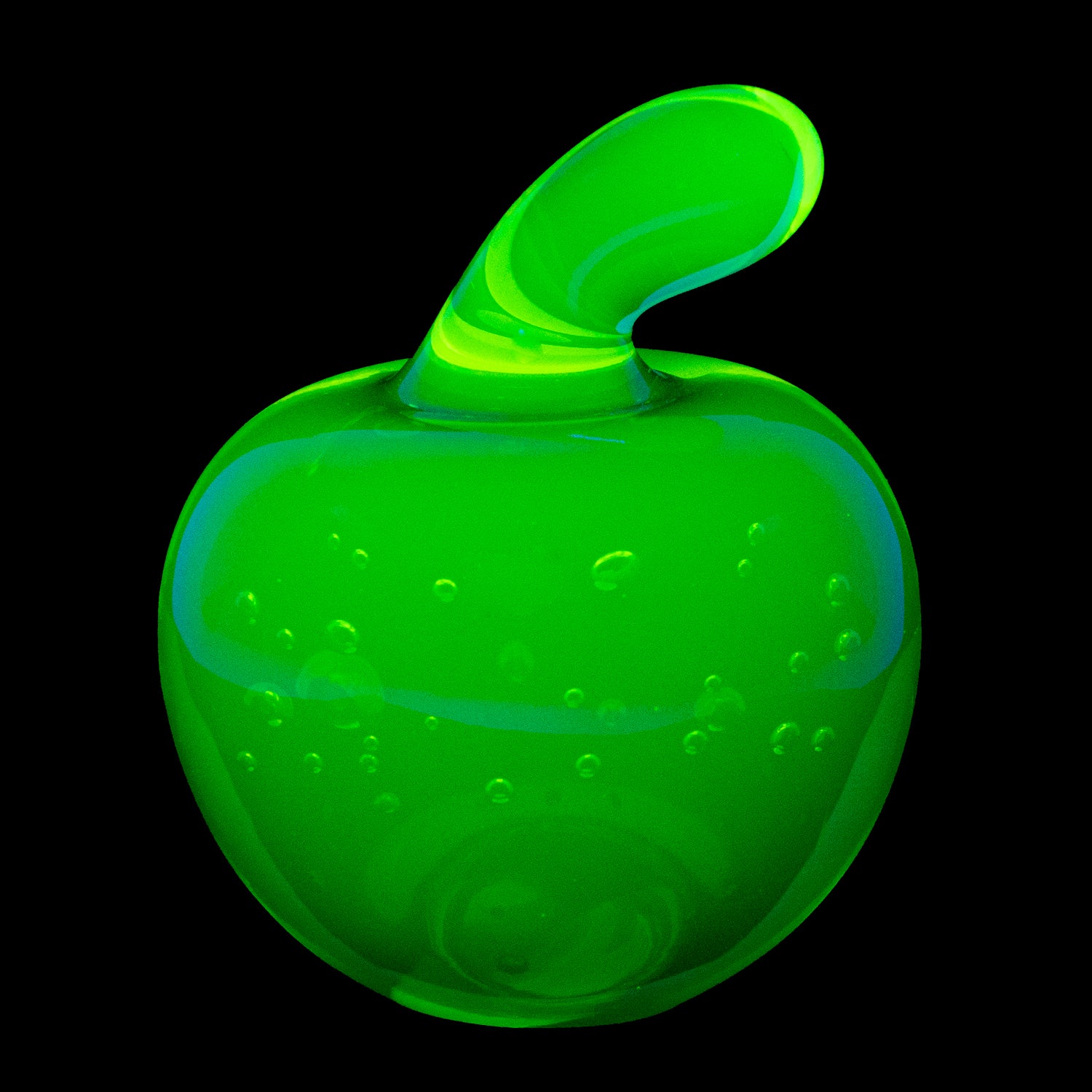 捷克共和国手工制作的紫外线反应艺术摆件——铀玻璃梨形镇纸