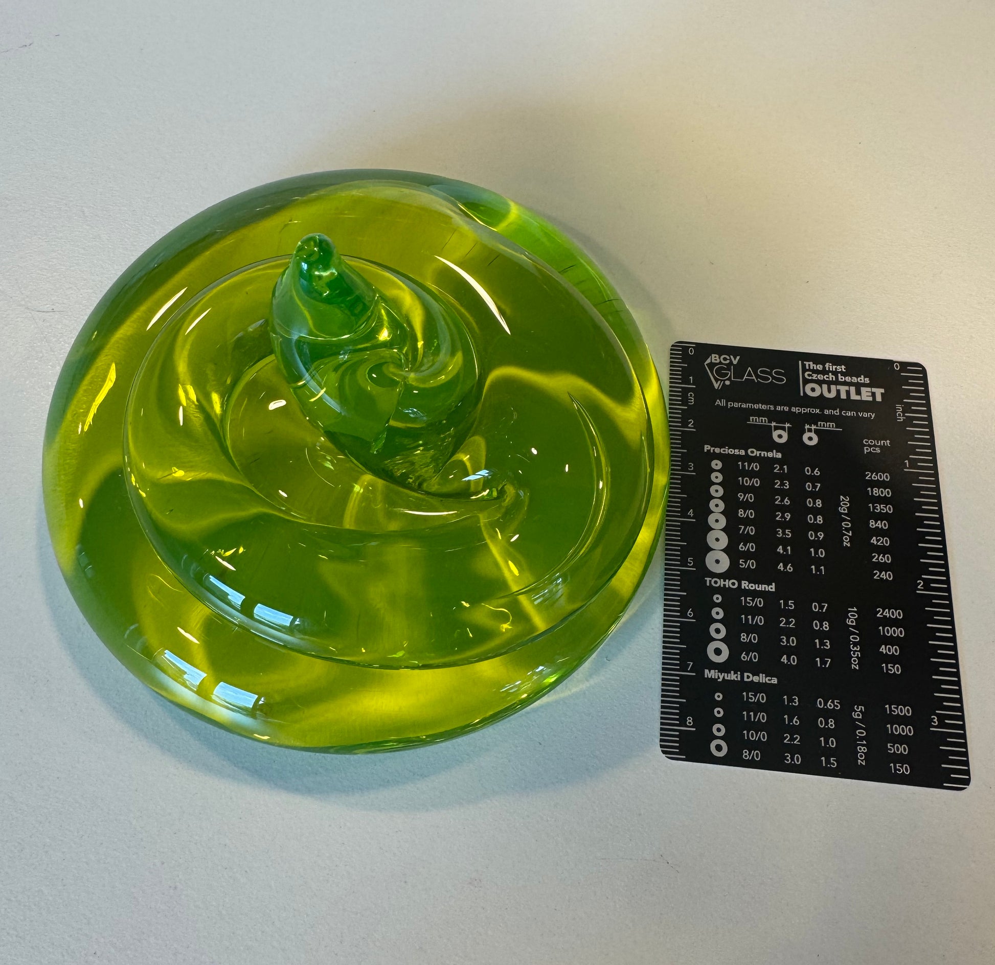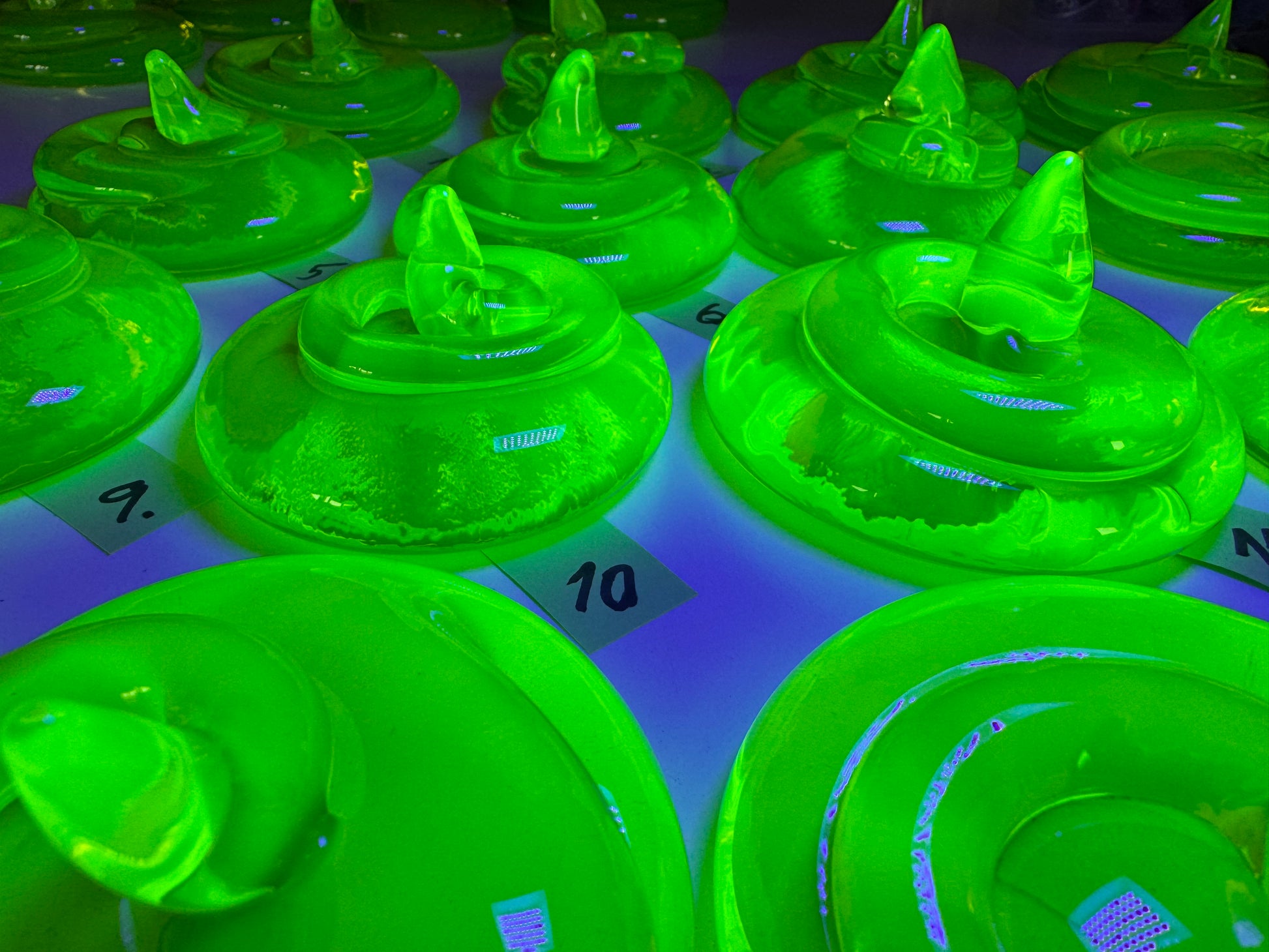 这款色彩鲜艳的铀玻璃雕塑展现了收藏家们钟爱的标志性霓虹绿光芒。它采用手工精制而成,表面光滑抛光,造型自然流畅,为任何展示增添一抹亮丽的色彩。在紫外线或黑光灯照射下,玻璃会发出耀眼的放射性荧光——这是真正铀玻璃的标志性特征。它是一件时尚独特的艺术品,适合摆放在古董柜、现代书架或主题装饰中。✔ 真正的铀玻璃 ✔ 天然紫外线反应——在黑光灯下发出强烈的荧光 ✔ 非常适合收藏家、科学爱好者和玻璃艺术爱好者展示